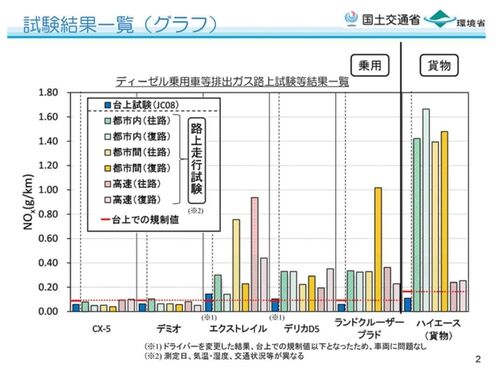 国産ディーゼルモデル6台の排出ガス路上試験結果公表